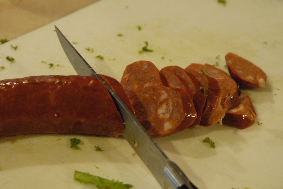 Note:*Chouriço, Portuguese style sausage, is usually available either fresh or dried.