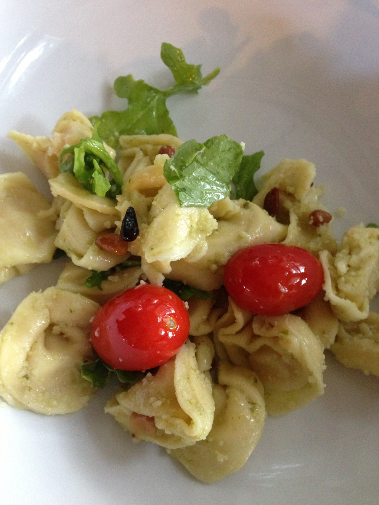 3. Cook tortellini: Add tortellini and 1 tablespoon salt to boiling water and cook, stirring often, until tender. Drain tortellini, shaking off excess water.