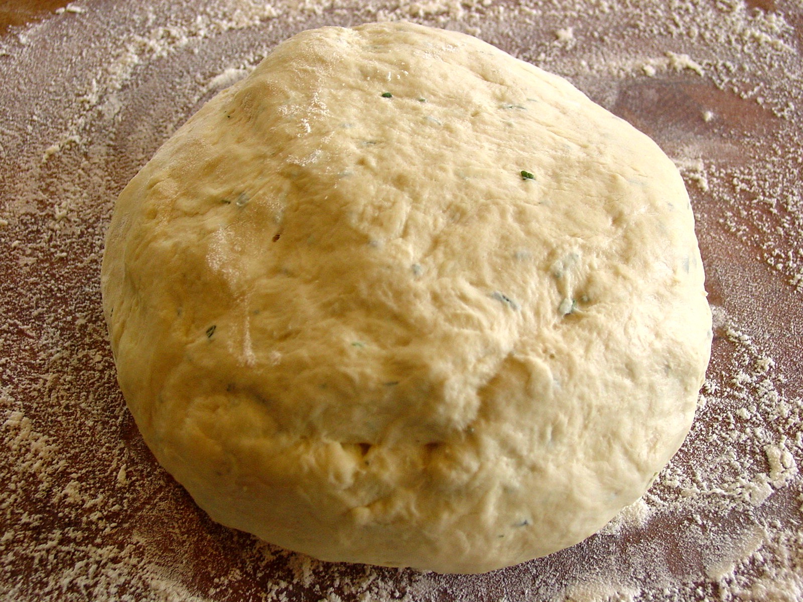 - Add the flour, oil, salt, and rosemary. Stir until mixed then transfer to floured surface.