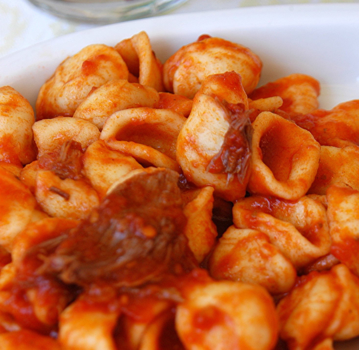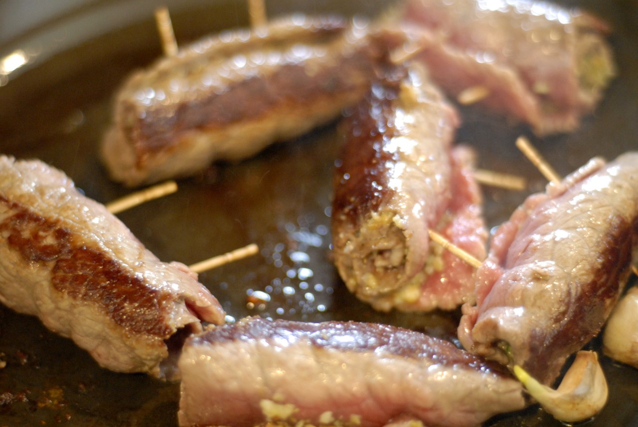 If using a tender cut of meat, you could simply serve the involtini at this point. Alternatively, I usually add 2 cups of tomato sauce and serve the involtini over a bed of orecchiette.