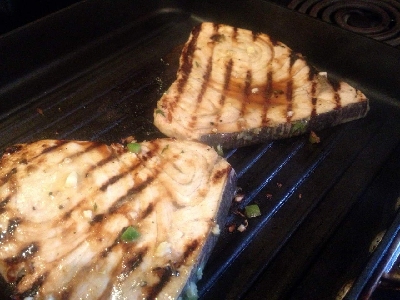 - Place the swordfish steak in a quart size zip-lock bag along with the marinade and close squeezing out all the air.