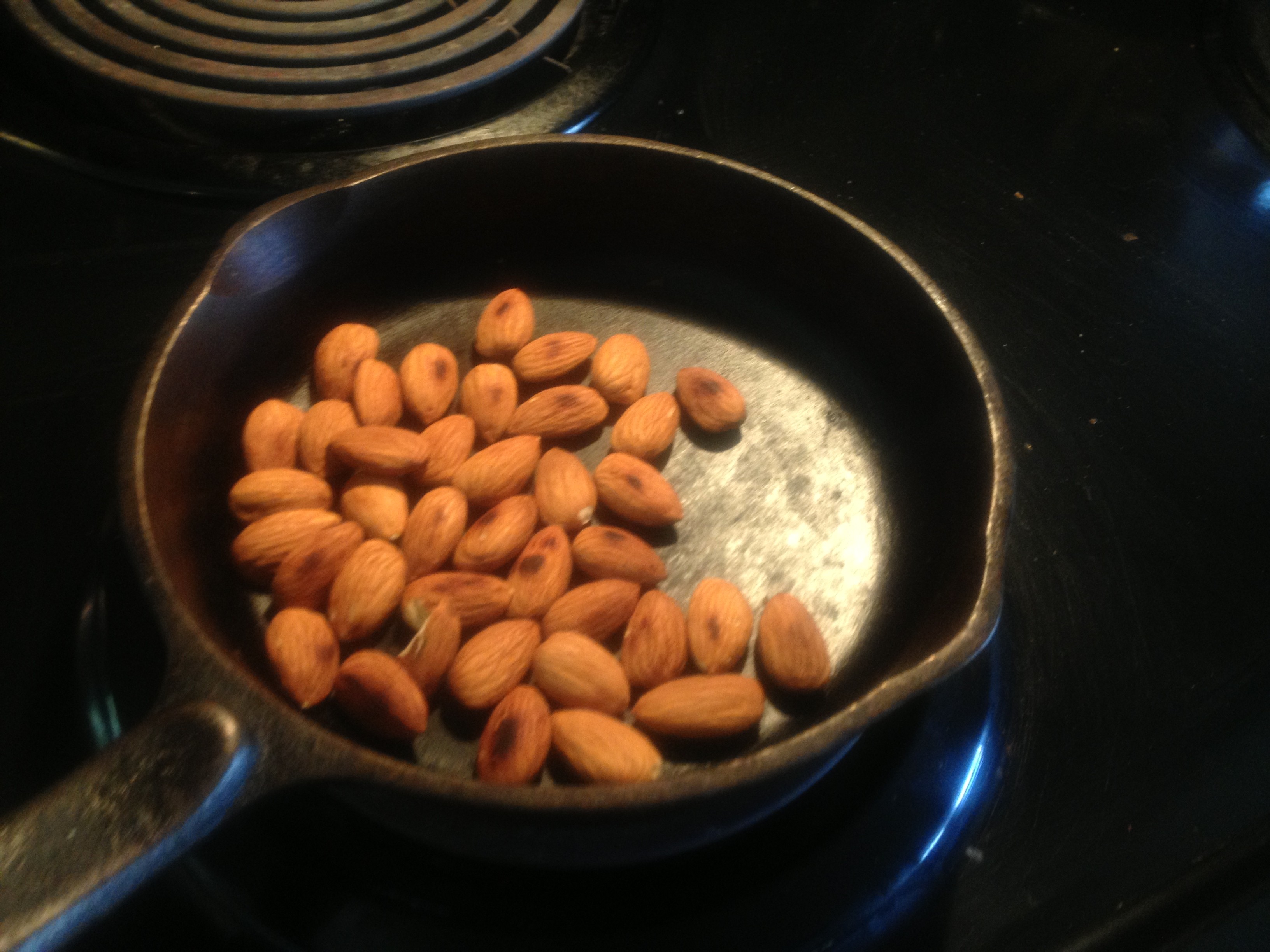 - While the squash is roasting, toast the almonds in a heavy skillet over low heat until golden. Chop coarsely.