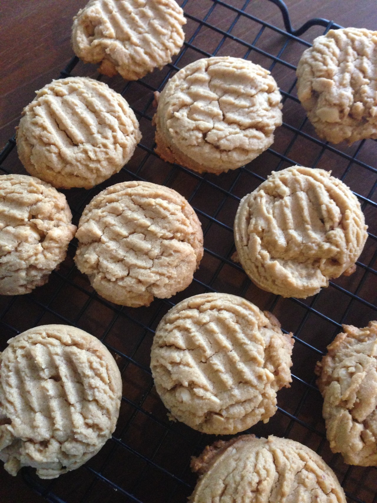 7. Drop the dough by rounded tablespoonfuls about 3 inches apart on ungreased cookie sheet and flatted each with palm of your hand. Using the tines of a table fork, make a criss-cross pattern on top of each cookie. Bake until the cookies are golden brown on the edges and slightly soft in the center, 15-18 minutes. Let the cookies cool on the sheet for one minute before transferring them to a cooling rack.