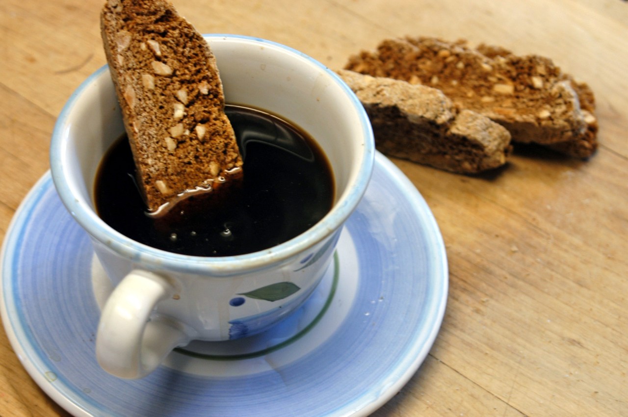 The prefix “bis” means “again, or one more time, or even twice removed” and comes to us from Latin. “cotti” is the past particle “cooked” in Italian, so it stands to reason that biscotti are twice cooked. This characteristic is what gives them their keeping power. Left in a nice, safe place (away from predatory housewives looking to complement their tea break!) they will keep for weeks. This recipe can be used as the basic biscotti plan – perfect for a leisurely breakfast or the aforementioned tea-break! Notice that these biscotti have no butter in them.