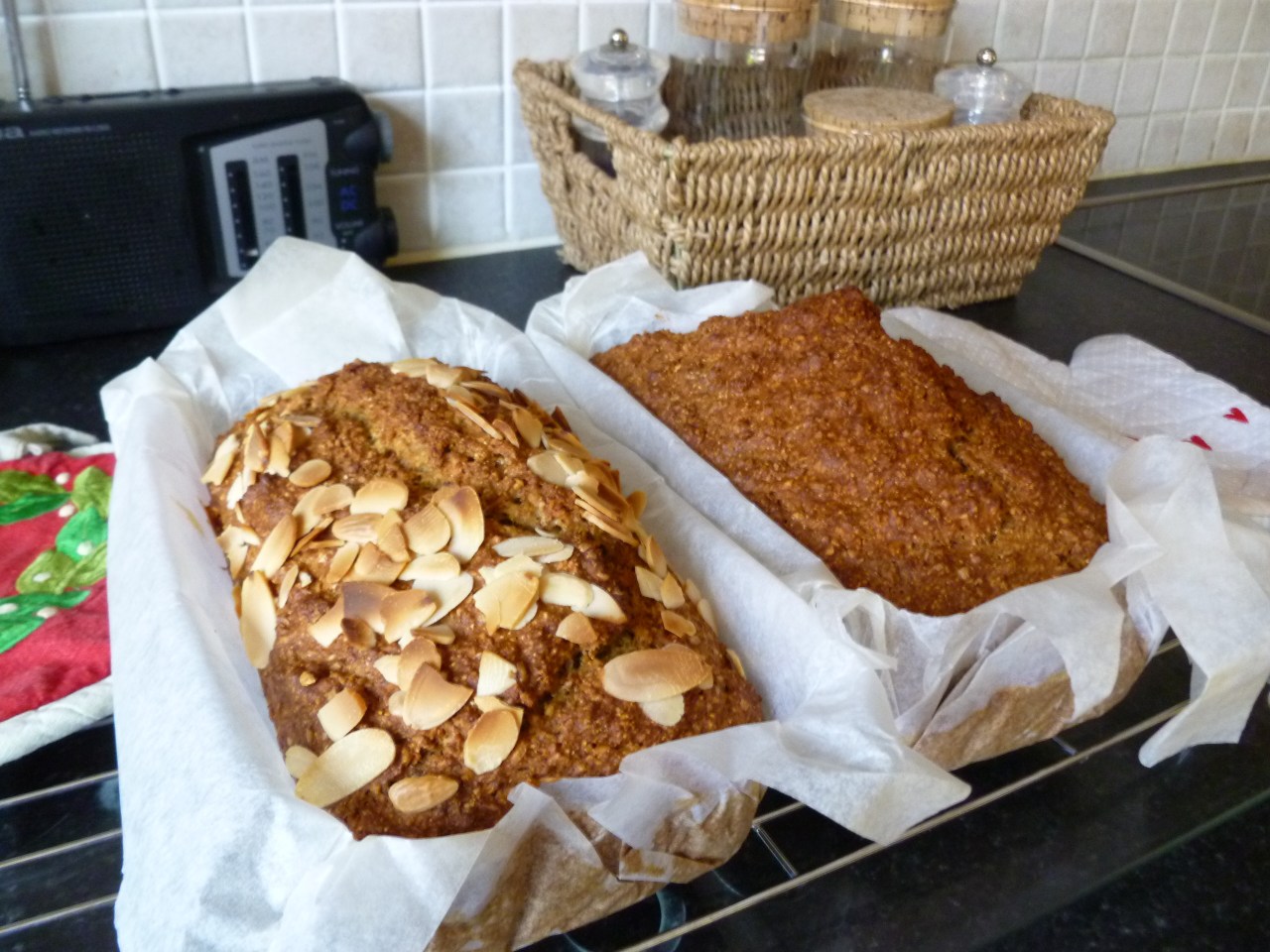 Divide between two 2 pound loaf tins and bake in a pre-heated oven at 350 F