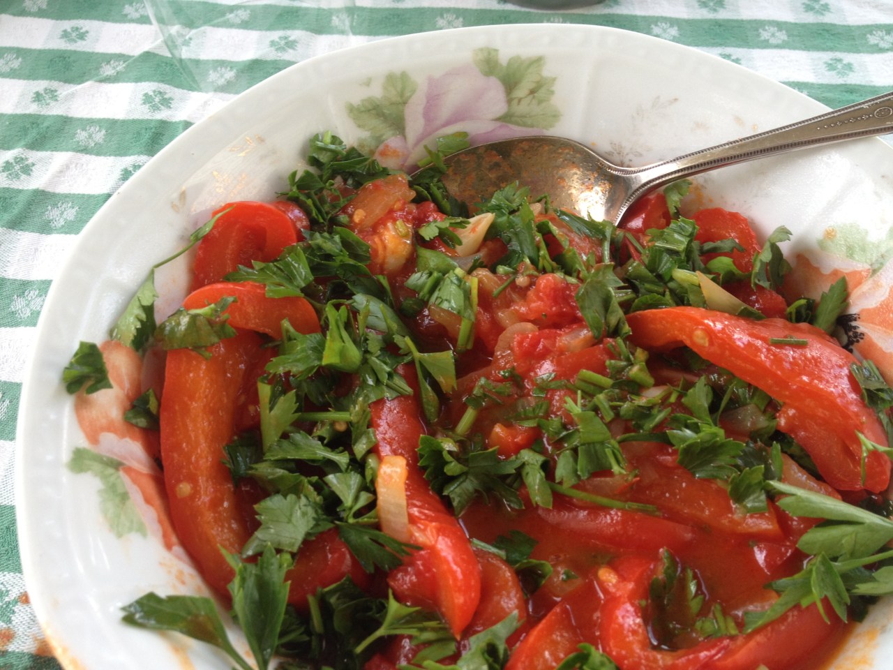 Serve – The addition of chopped parsley on the peperonata is nice.