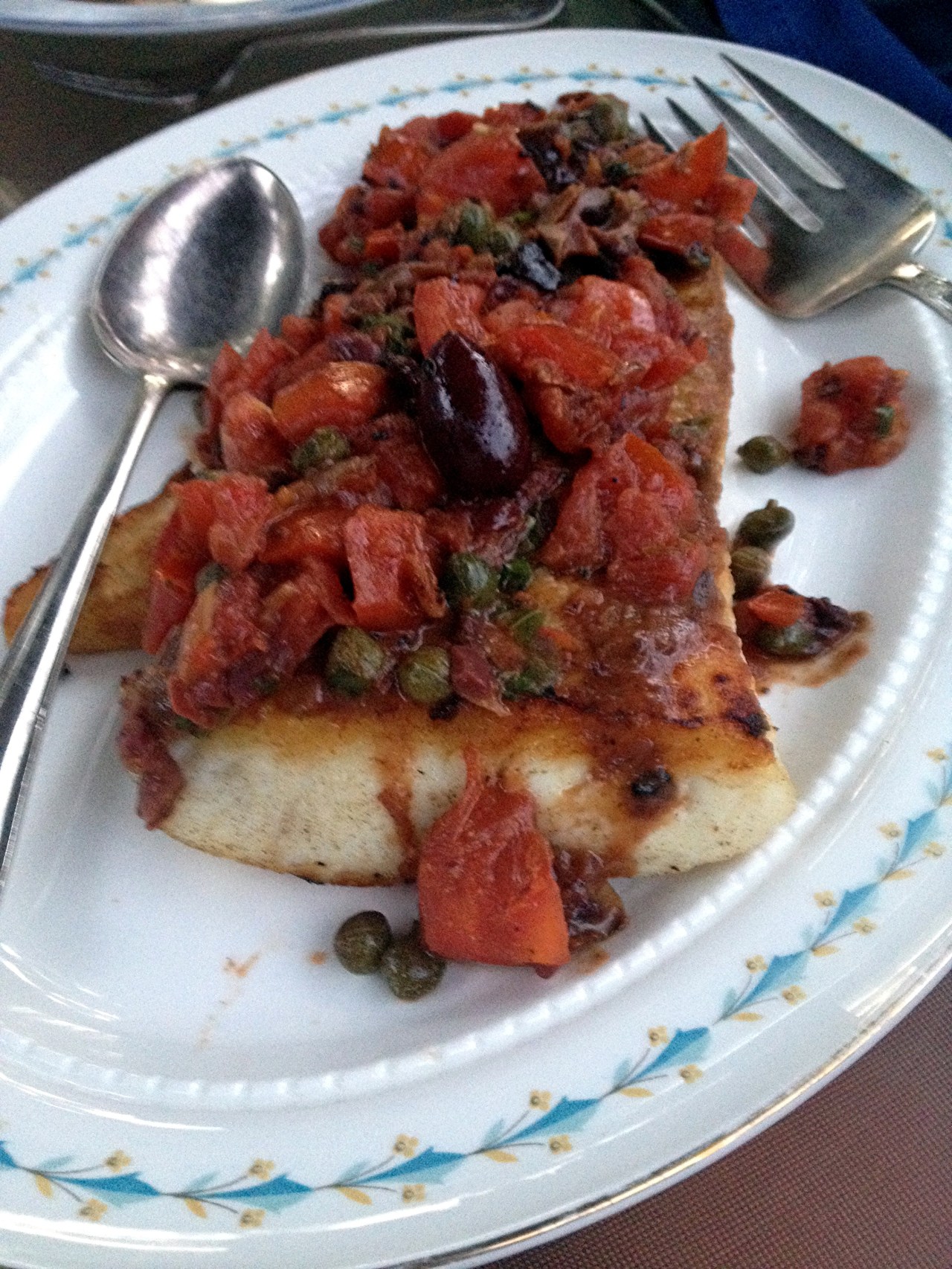 While sauce is thickening, stir often, and place a bed of risotto, herbed quinoa, or couscous on plates. Top with halibut fillets and spoon the sauce on the fish, as in the following example – serve with a side salad and you have a meal.
