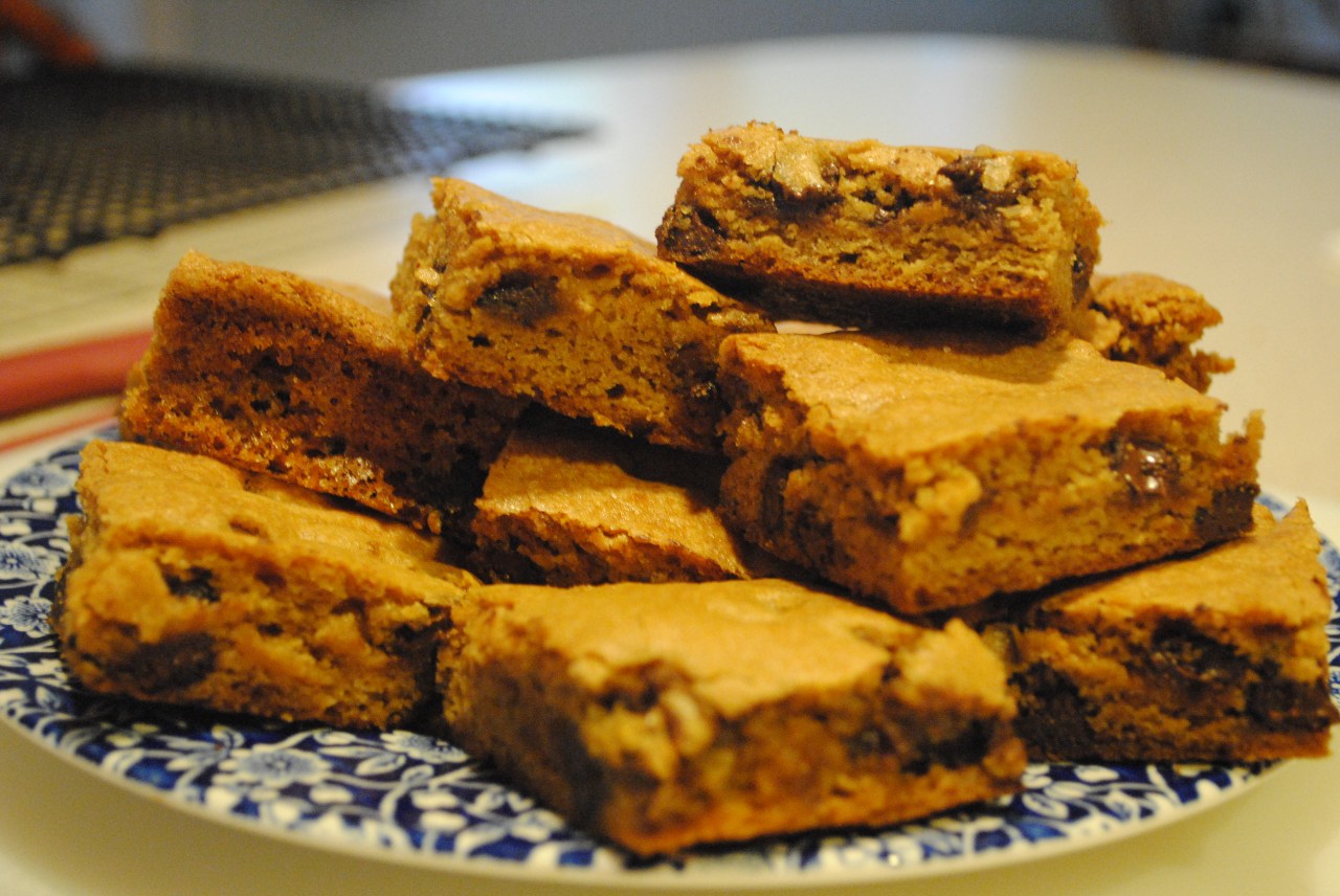 - Transfer blondies to cooling rack by picking up foil sling. Slice into bars and serve.