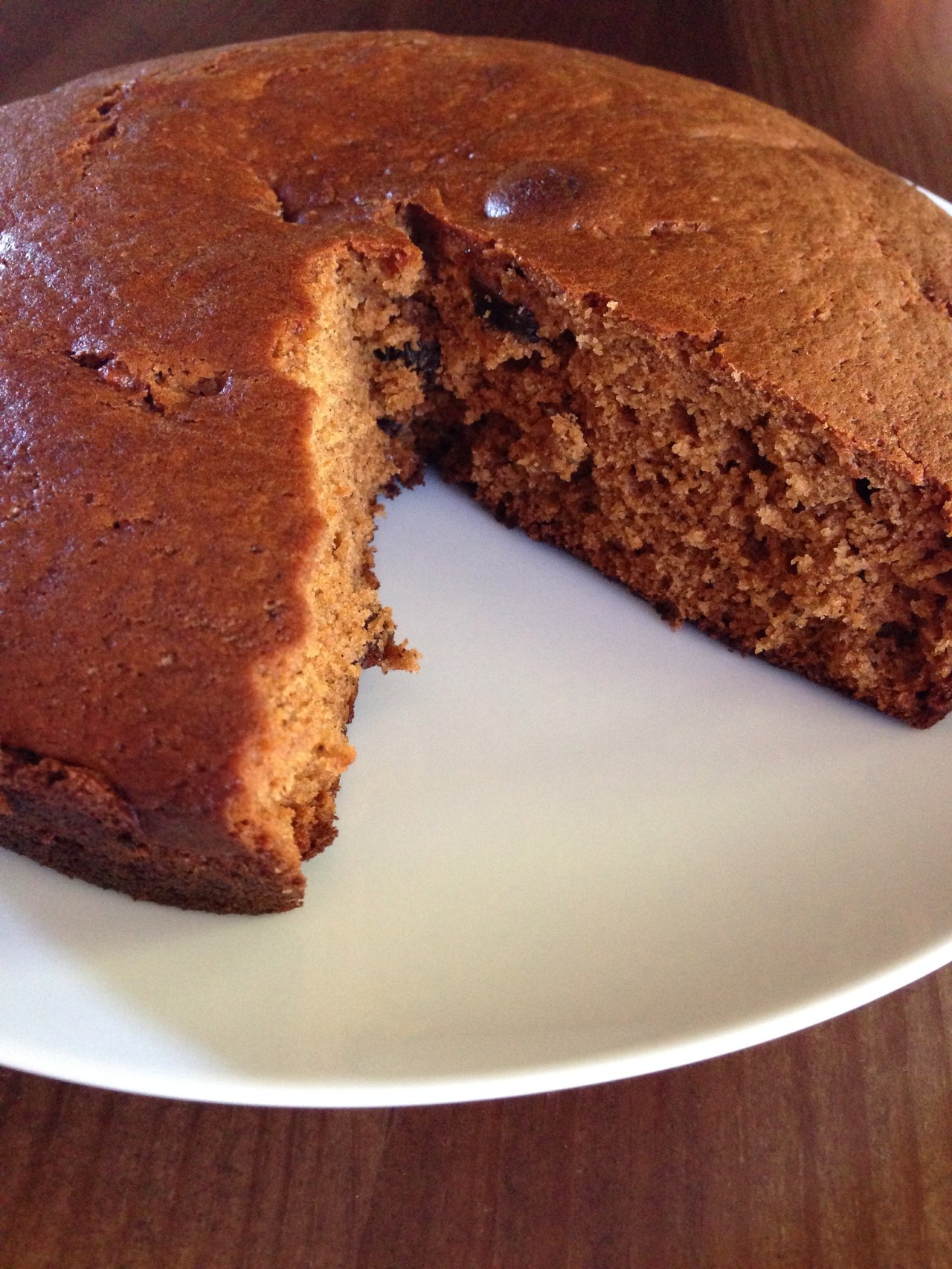 If you bake the spice cake in a round pan, it takes a shorter time to bake.