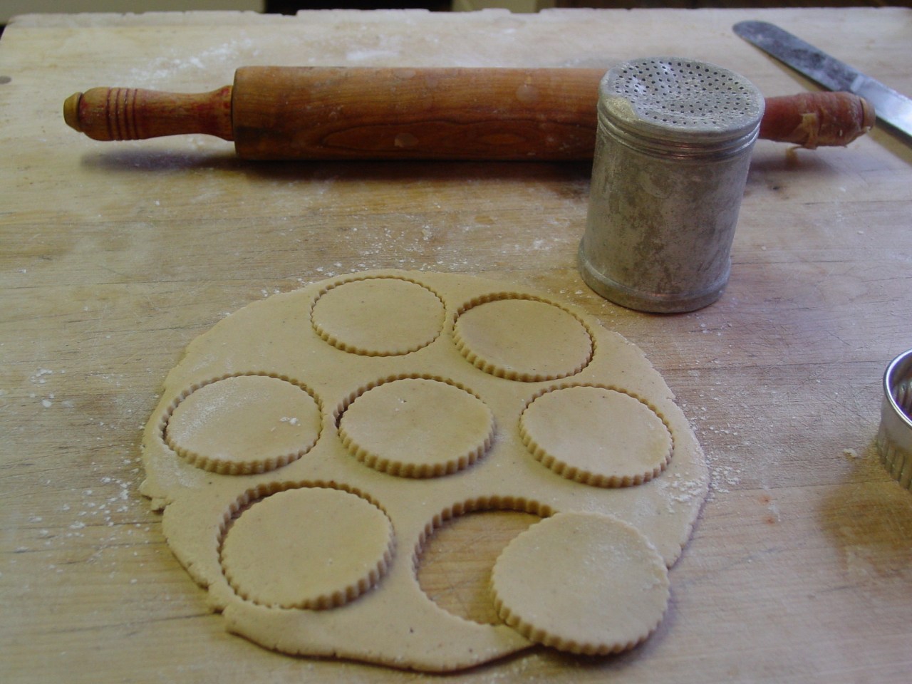 - Sprinkle the rolling surface with flour and roll the dough into one-eighth-inch thickness.