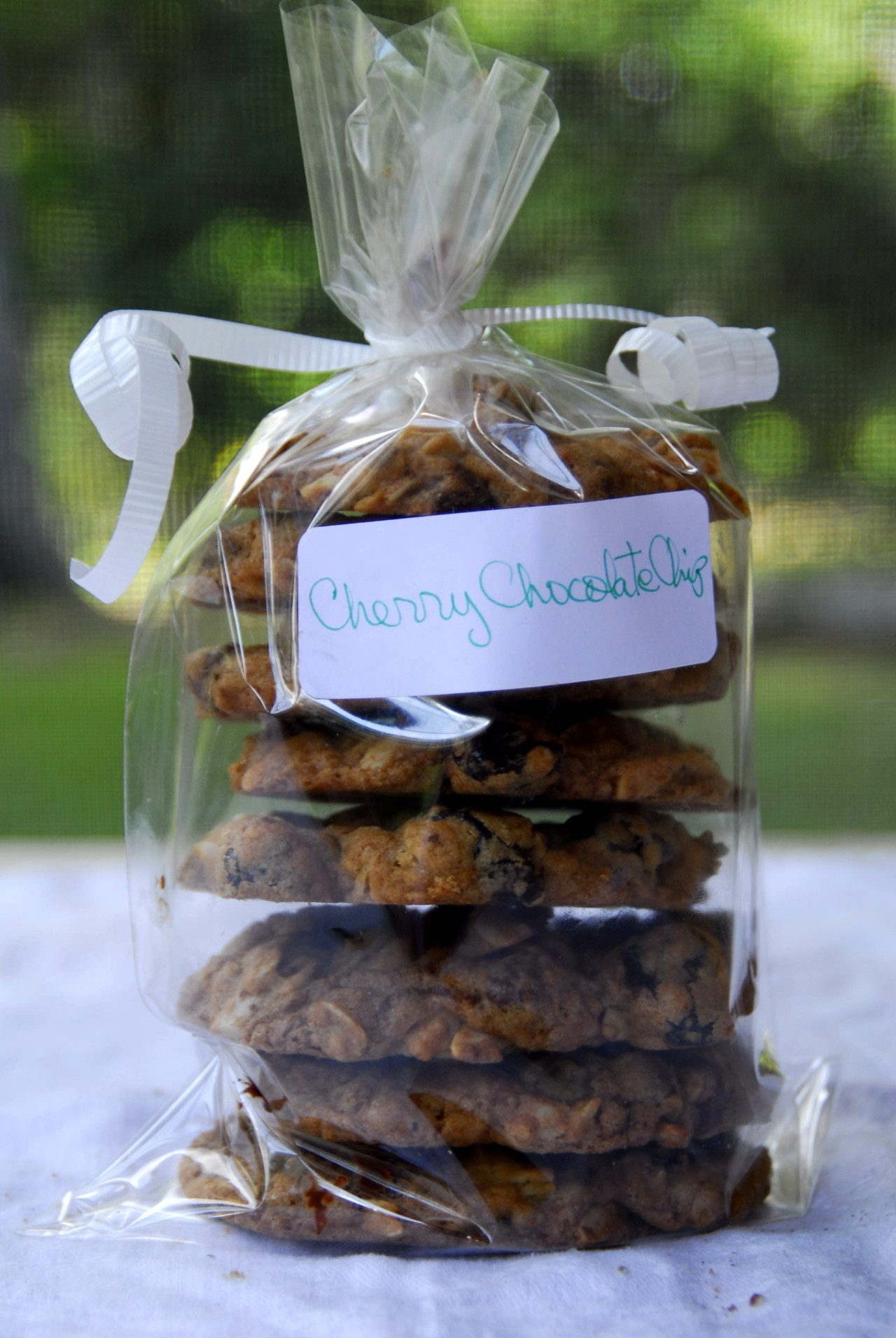 - In a bowl, measure out the oats, the chocolate chips, and the cherries. Add the cooled almonds and set aside.