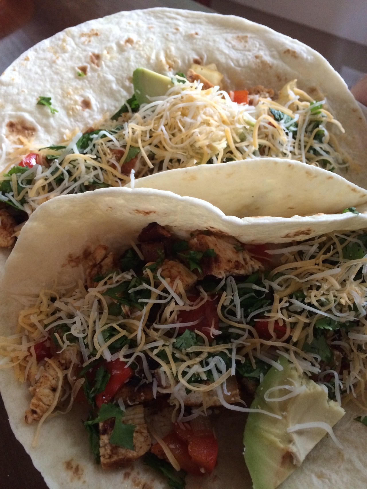 I LOVE this recipe. It came out in the April/May 2004 Fine Cooking magazine, and I have been making it ever since. I have posted the recipe in its original form. I, of course, have tried many modifications from the original over the years; commonly, I will use flour tortillas and incorporate less spicy peppers. The main meat in this recipe is chicken but what makes the dish unique is the bacon; it adds a smoky depth to the dish. The recipe title say’s “tacos” but could easily say “fajitas.” With leftovers (if there are any), I will add the meat mixture to a salad or quessadilla filling.