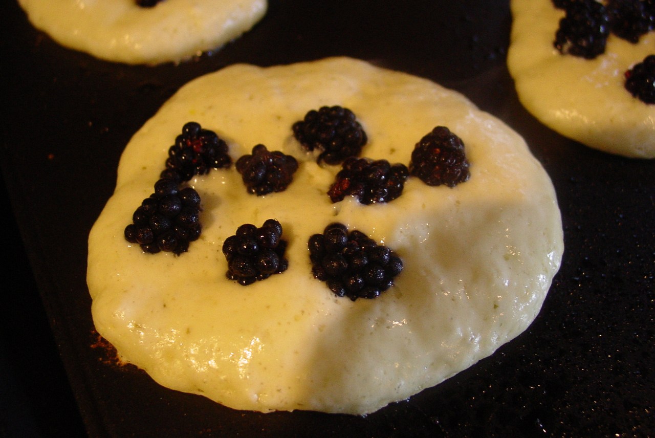 - Using a small ladle or scoop, pour pancake batter spacing pancakes a few inches from each other.