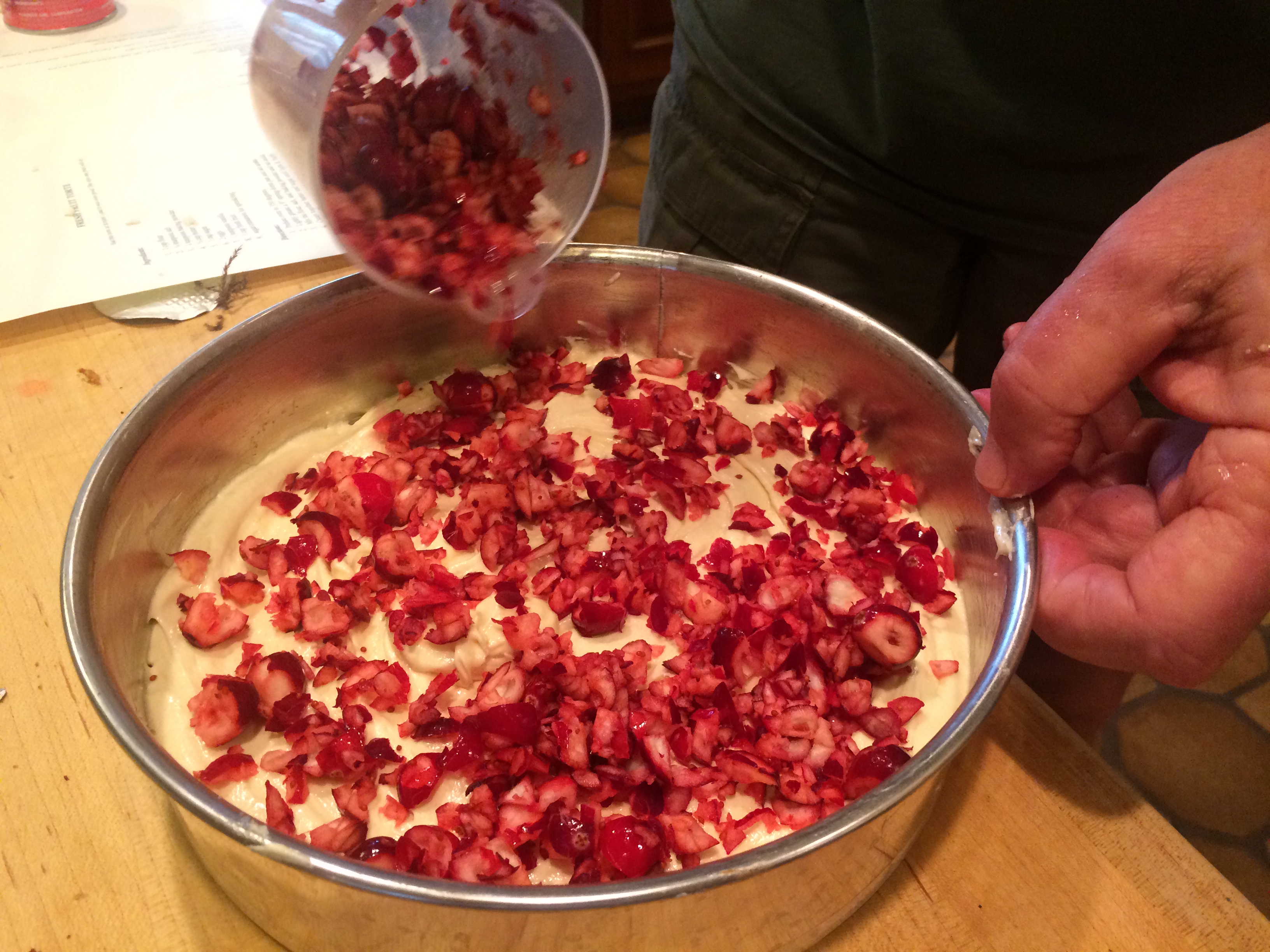 Had this torte at Kristin’s and it was sooo good! She says any fruit will do, but she served it with cranberries and the tartness of the fruit really complemented it.