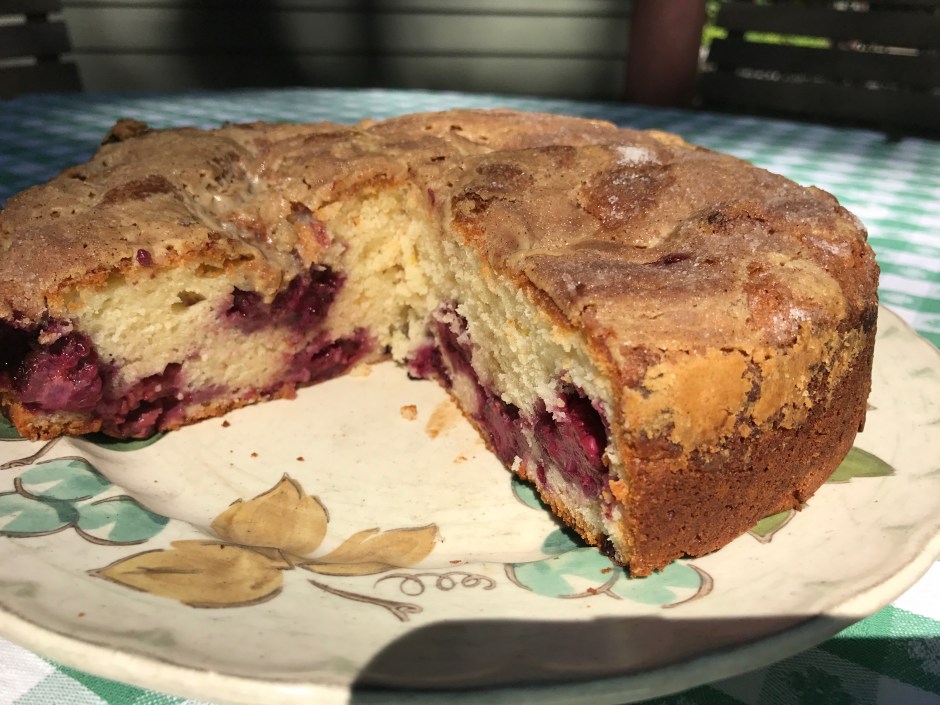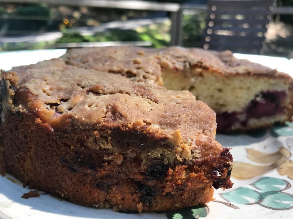 The only change that was made in the recipe is that Jack mixed 1/2 blackberries and 1/2 raspberries. Julie reports having made it with raspberries and it was good with that berry as the only lonely as well…so, maybe we should change the name to Tahini-Blackberry/Raspberry yogurt cake? Just kidding…apparently the cake is fairly adaptable to experimentation.
