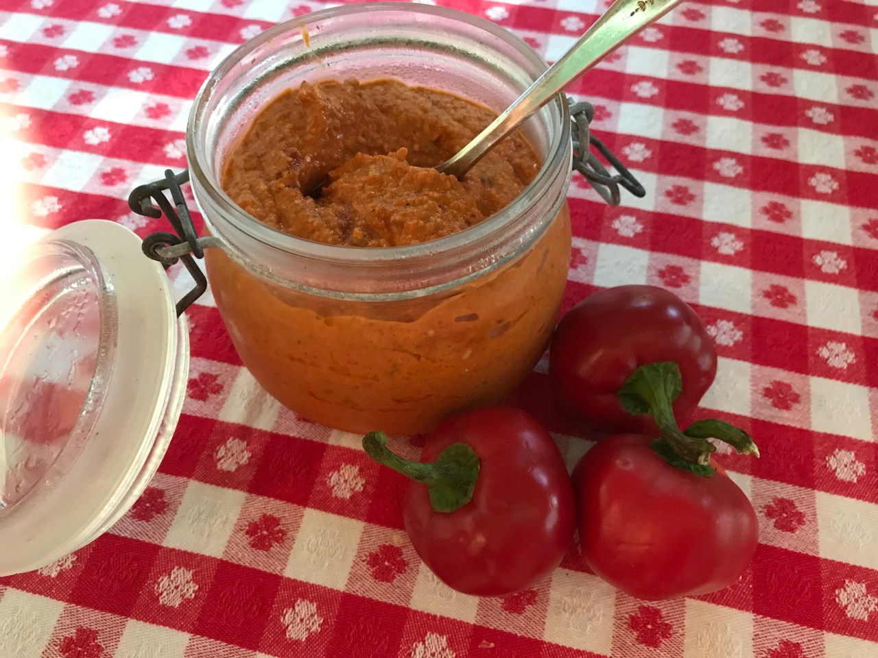 Recently we were at Table, a local restaurant here in Asheville, and Jack had a fish dish served with romesco sauce which was unusually good. The chef told us that he had not included bread in the sauce because of concerns about gluten free diners. Jack liked the idea of no bread and it inspired him to come home and consult several recipes before making his version of the sauce. Jack’s sauce was unusually good as well, so it was time to add it to our repertoire.