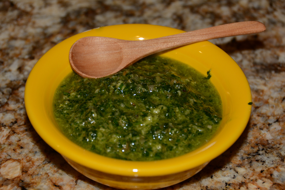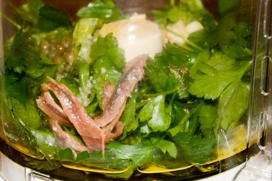 As much as I love chimichurri from my native country, I definitely want to have something that is a bit different. I also want to have something that is as easy to make as my chimichurri salsa. My favorite Italian site suggested making the sauce early enough to allow at least two hours for the flavors to meld. So, I did that. I was happy with the flavor, but decided that, like the Italians, I would prefer to thicken the sauce, but I didn’t go so far as to add the hard boiled egg yolk, but I did add two tablespoons of fresh bread crumbs and thought it was perfect!