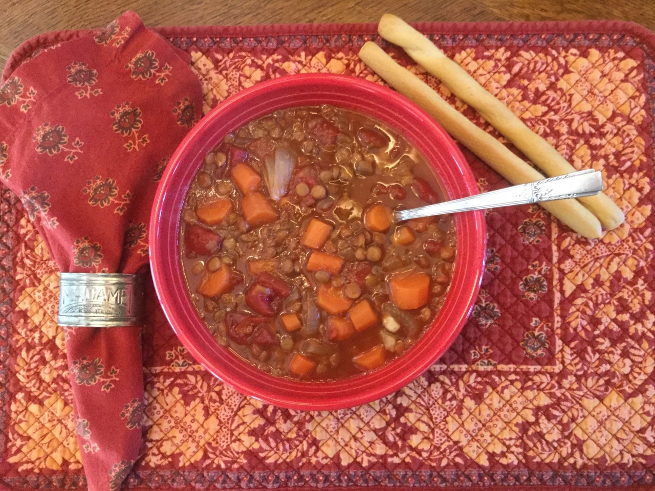 I like to pair lentils with garam masala, so that is how I flavored my soup, but then, I thought, why not Italian herbs next time? Or a Spanish take with cumin and saffron?