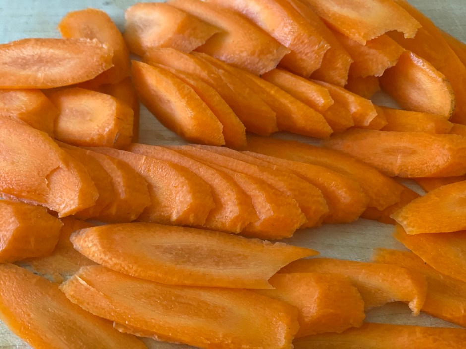 Place on a baking sheet lined with parchment paper and toss with 1 tablespoon of olive oil and the Ras El Hanout. Roast carrots until tender and brown, 20 minutes or so.