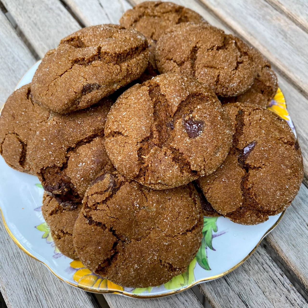 A Seasonal Treat -Have you ever gotten a flyer from a local grocery store and deciding that, yes, you WOULD try that recipe? That is exactly what I did. There is a small chain of markets in our region which always manages to carry items that brighten the holiday season. As it happens, both in Asheville and in Winter Park we have a Fresh Market. I looked through a flyer I received from them and saw this page – Bake Someone Happy. I thought it was pretty clever but wondered if anyone I knew liked ginger as much as I did. I followed the directions, but one thing that puzzled me was that there was no mention of oven temperature. I baked the cookies at a 375 degree oven. The recipe (below) said to bake the cookies in two racks of the oven. However, when I did I noticed that the cookies baked on top were nicely crinkled, but the ones in the bottom were not. I recommend not baking the cookies together but to bake them in two batches in the middle of the oven. Other than that, Thanks to whoever at Fresh Market thought this one up!
