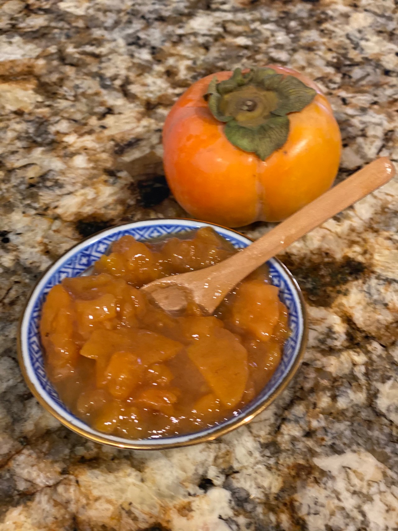 Persimmons’ skin is high in pectin. This particular recipe calls for peeling the persimmons. When I make the jam “skin on” I am careful to cut the fruit into very thin slices so that the skin will not overwhelm the jam. The “skin on” jam is thicker in consistency because of the high pectin content. Both versions of the lamb are particularly good paired with cheese.