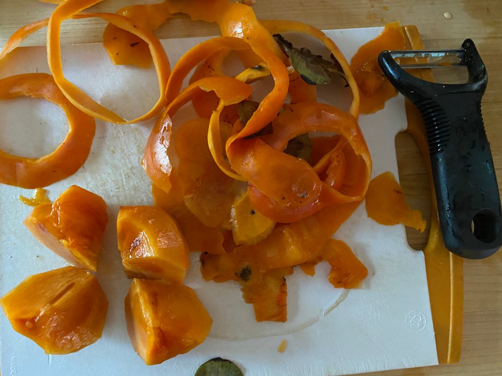 Persimmons are a fall treat. Starting around mid or late October, they begin to appear in the local markets. They are sold by the unit or by the pound. Costco, however, typically sells them in a two pound sack. That is when I buy 2 or 3 sacks and make jam.