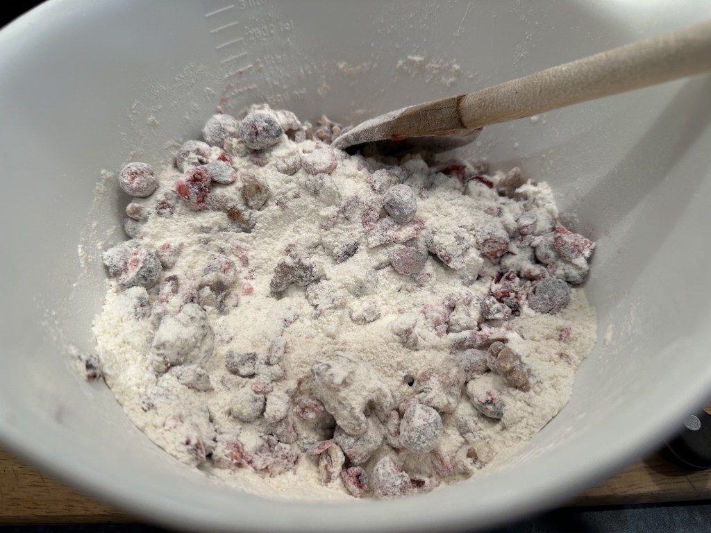 This particular entry is a “quick bread”. Quick breads don’t use yeast that has to rise once or twice before it popped in the oven. You mix the ingredients, put them in a prepared pan, and that is that.