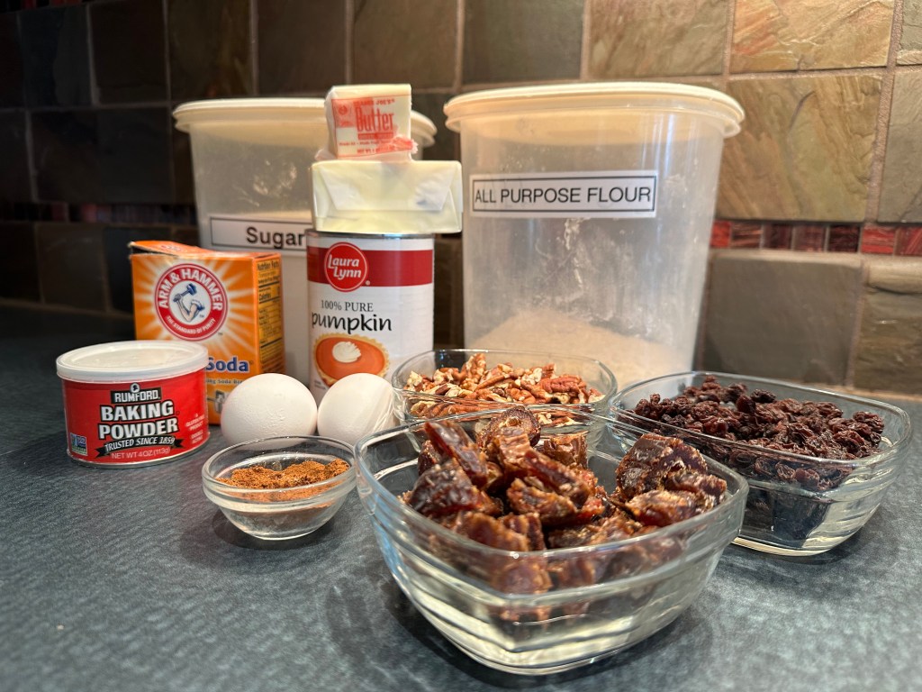 Aside from pumping myself up as a great pumpkin bread baker, the anecdote is to emphasize that you can bake pumpkin bread as little loafs, normal size loafs, muffins, and in a Bund pan (my favorite way).