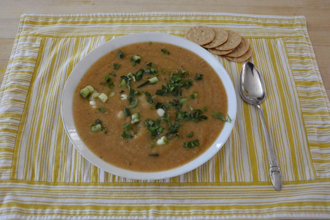 The soup works well as either a hot soup in the winter or a cold soup in the summer. Once the ingredients are cooked, they can be passed through a potato ricer, blended in a blender or food processor, or simply blended with an immersion blender. I tend to go the easy route and blend with an immersion blender.