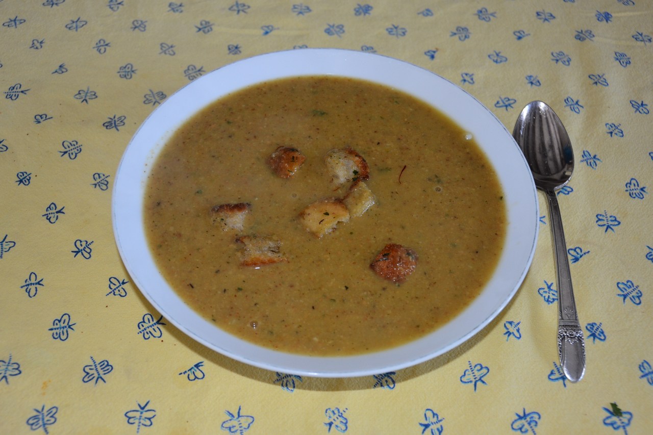 Perusing an old Gourmet Magazine from 2003, I found this recipe for Spanish Almond Soup. It was a January edition and featured cozy meals to be enjoyed in winter, but I made it in the heat of an Orlando summer and served it for lunch! I occurred to me that the soup would work well chilled next time.