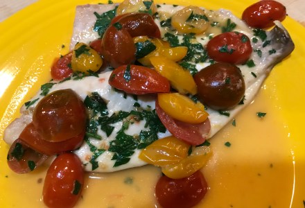 Roasted Chilean Seabass with Green Grapes and Toasted Almonds